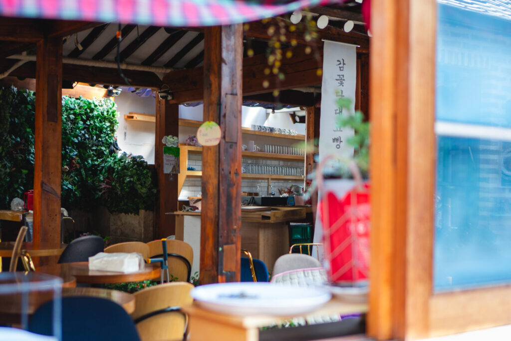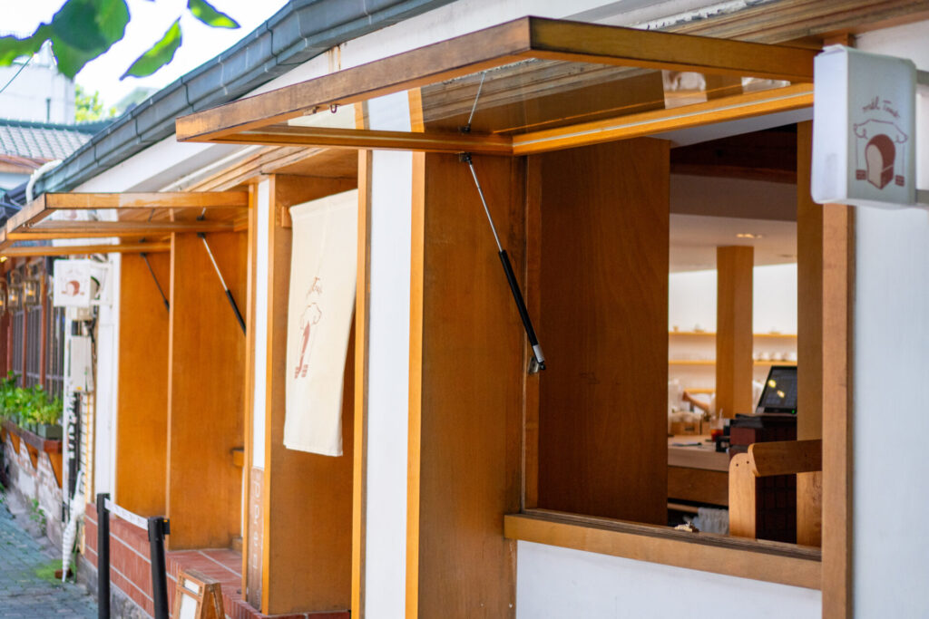 次に訪れたのは、「Cafe Onion(カフェオニオン)」です。アーティストベーカリーが最新の作り込まれた空間だったのに対し、こちらは築100年を超える韓国の伝統家屋「韓屋(ハノク)」を改装した、とても趣のあるパン屋さんでした。
