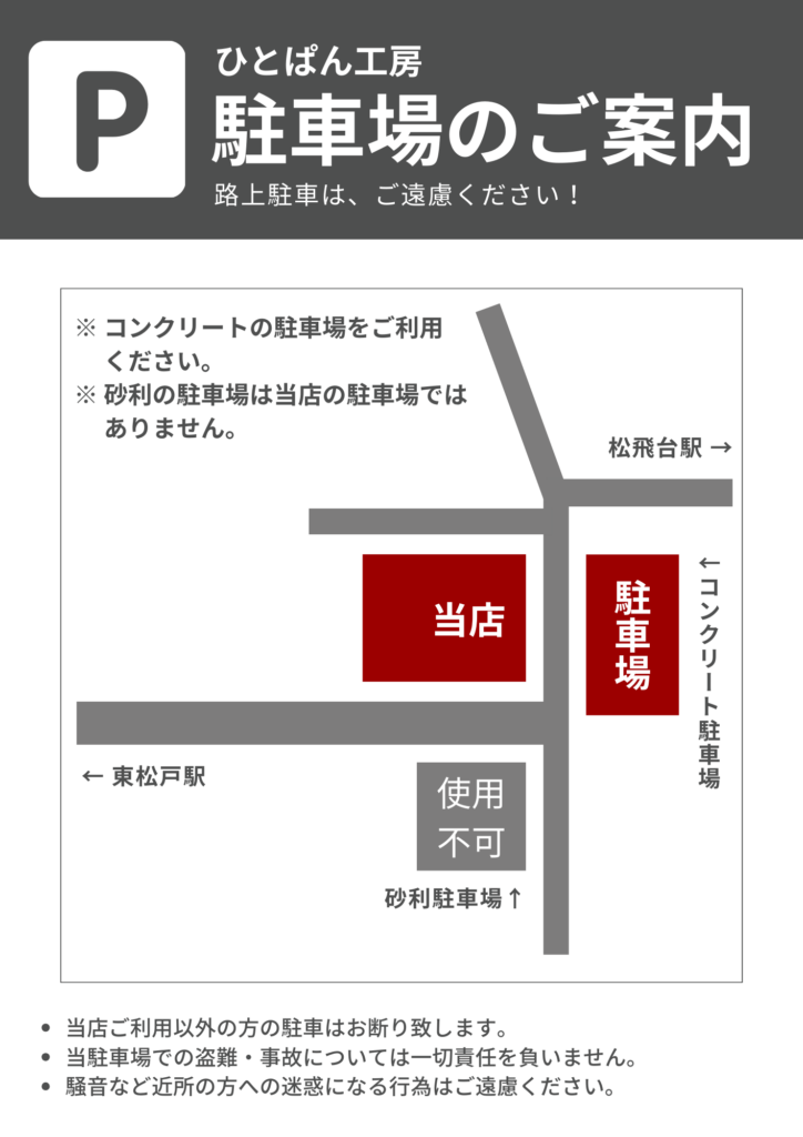 当店をご利用のお客様は、専用駐車場を無料でご利用いただけます。