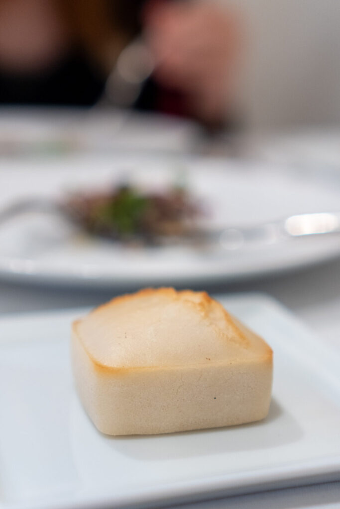 シェフにお話を伺ったところ、お客様に一番人気があるのは「米粉パン」だそうです。 コースの最初の方、繊細な前菜やスープに合わせて、シンプルな米粉パンを出してくださっています。